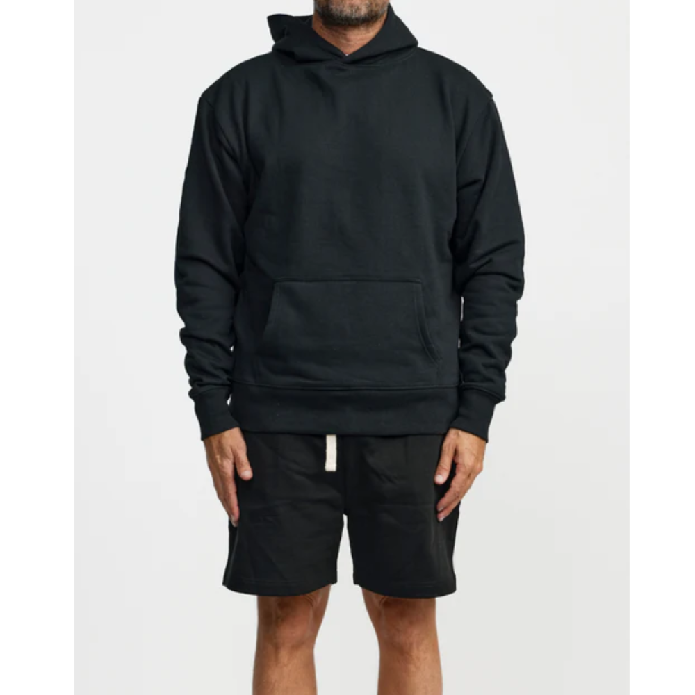 Relaxed in fit, refined in finish. Designed with dropped shoulders, rib trims, and a clean-lined hood, it delivers a modern drape with a premium hand-feel. Models are wearing a size M.